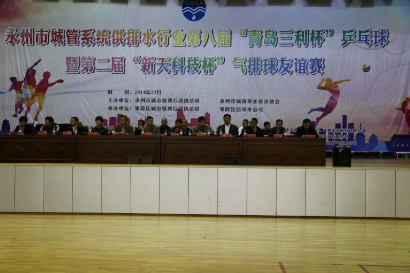 经过三天的激烈角逐,由永州市城管执法局、市供排水协会主办,零陵区城管执法局、区自来水公司承办,永州市一中协办的市城管系统供排水行业第八届“青岛三利杯”乒乓球暨第二届“新天科技杯”气排球友谊赛,于2018年11月11日下午在永州市一中体育馆胜利闭幕。